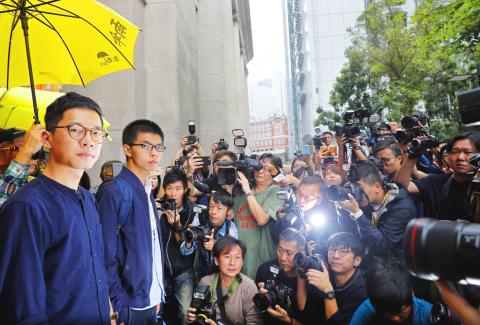 The Court of Final Appeal approved the request by Wong, Nathan Law (羅冠聰) and Alex Chow (周永康) to appeal the months-long prison terms they received for their roles in an unlawful assembly that sparked the protests.