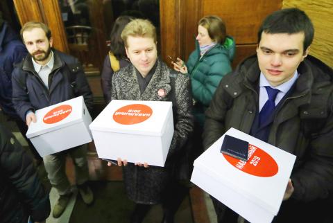 Thousands backing the charismatic lawyer met in 20 cities from the Pacific port of Vladivostok to Saint Petersburg in the northwest to nominate him as a candidate in the presence of electoral officials to boost his chances of contesting the March 18 ballot.