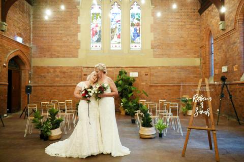 Gillian Brady and Lisa Goldsmith, together for eight years, were married at the same time at Perth gay bar The Court.