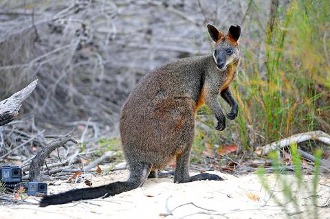 Lewis estimated that the wallaby, whose species is rarely seen swimming, was in the water for about 30 minutes, she said, adding that witnesses told her that it had been chased by an off-leash dog.