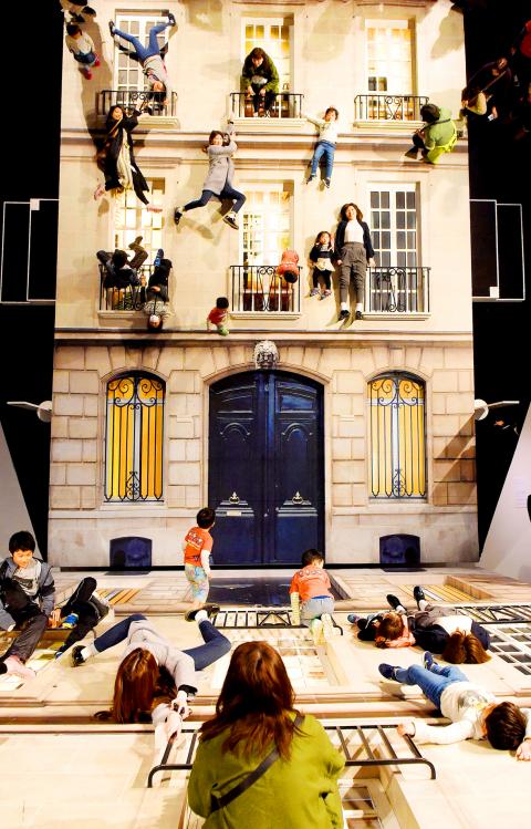 Swimming Pool sees people walk fully clothed into a pool — except there is no pool. Elevator Maze, a matrix of elevator banks, confuses patrons when they do not see their own reflection in the mirror.