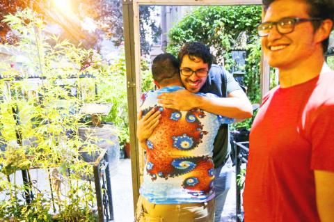 With his American husband, Nunez-Mujica traveled to Santiago to meet in the flesh those he has helped evacuate. At an emotion-filled meeting in a downtown bar, the bond with people meeting for the first time was immediately apparent as he greeted Klie and three others he has helped with big hugs.