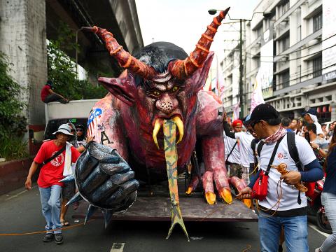 Thousands of Philippine workers and activists yesterday marched in the International Workers’ Day rally in Manila to protest against what they said was Philippine President Rodrigo Duterte’s failure to keep a campaign promise to get rid of short-term employment contracts.