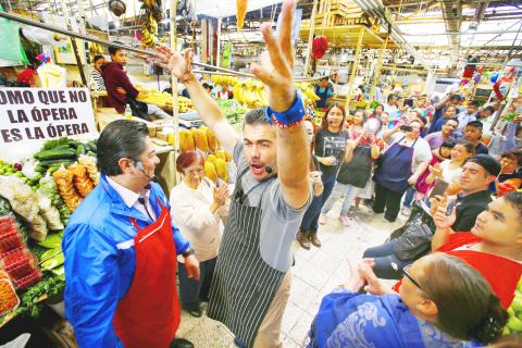 A troupe of four singers surprise shoppers at one of the city’s 300 public markets, chopping beef while they belt out romanzas, courting fruit vendors with arias or, in the case of the tenor, moving a woman to tears with lines such as “eyes that cry don’t know how to lie” from the opera La Tabernera del Pueblo.