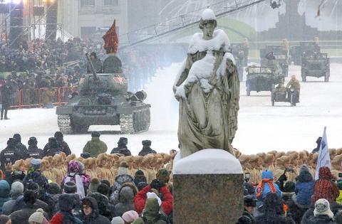 Tanks and air defense missile systems yesterday rolled through the heart of Saint Petersburg as the city, formerly known as Leningrad, marked the 75th anniversary of the end of a World War II siege that claimed more than 800,000 lives.