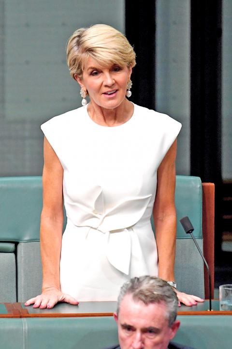 Bishop has represented Curtin, Western Australia, since 1998. She was foreign minister from September 2013 to August last year and deputy leader of the Liberal Party, which governs in coalition with the Australian National Party.