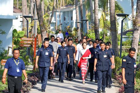 Burmese State Counselor Aung San Suu Kyi yesterday touted Rakhine State’s “untapped” economic potential to investors, but glossed over violence that has scorched the area — most recently claiming the life of an 18-year-old civilian.