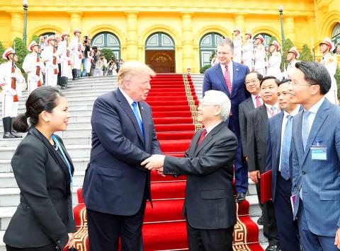 US President Donald Trump yesterday met Vietnamese President Nguyen Phu Trong in Hanoi, hours before Trump was due to meet North Korean leader Kim Jong-un for their second summit.