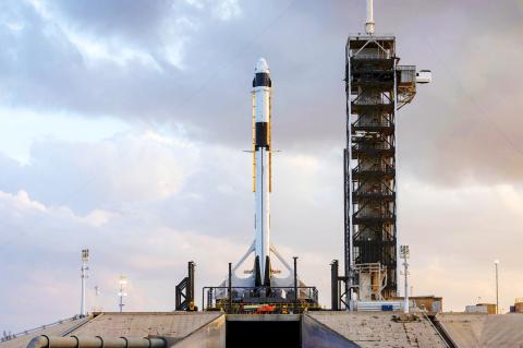 Three years behind schedule, a Falcon 9 rocket is scheduled to blast off today from Cape Canaveral at 7:49am GMT with a Crew Dragon capsule in its nose. It will aim to rendezvous tomorrow with the International Space Station. The capsule is scheduled to return to Earth on Friday.