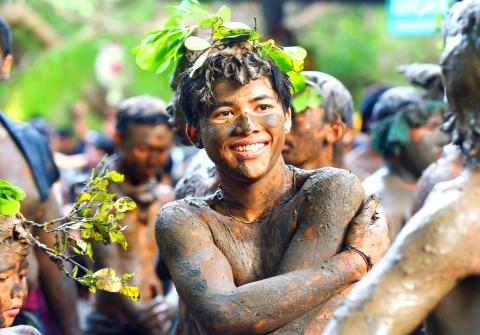 Villagers of all ages smeared mud on anyone in the vicinity, after praying for safety and good fortune.