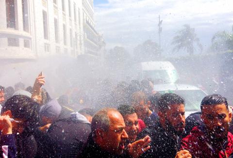 For the first time in seven weeks, police in the capital fired tear gas to try to disperse the protest by students, who were also hit with water cannons.