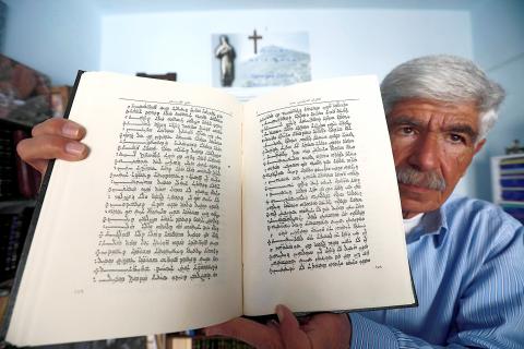 Hunched over a thick book, George Zaarour uses a magnifying glass to decipher Aramaic script — the biblical language of Jesus that is starting to disappear from everyday use in his village.