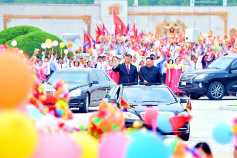 North Korea yesterday lauded its ties with historic ally China as Chinese President Xi Jinping (習近平) wrapped up a highly symbolic two-day visit to his nuclear-armed neighbor, with both nations facing deadlock in their negotiations with US President Donald Trump.