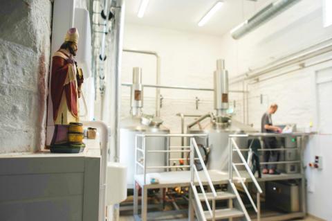 One monk, obliged to miss services on brewing day to monitor the high-tech system, joins his brethren in spirit by praying in the brewery, using an iPad app to ensure he is singing from the same page.