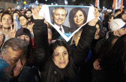 With 88 percent of polling stations tallied early yesterday, official results gave the presidential slate headed by Alberto Fernandez and his vice presidential running mate, Cristina Fernandez, about 47 percent of the votes.