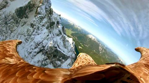 Filmed with a camera mounted between its wings, a white-tailed eagle named Victor is to show how it sees the world as it flies over the Alps to capture glaciers said to be crumbling because of global warming.