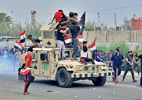 However, after thousands of protesters removed metal security barriers and crossed the Jumhuriyya Bridge leading to Baghdad’s heavily fortified Green Zone, home to the US Embassy and Iraqi government offices, soldiers fired tear gas to disperse them.