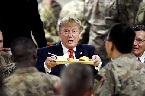 On a brief visit to Bagram Airfield outside the capital Kabul, Trump served turkey dinners to soldiers, posed for photographs and delivered a speech after meeting Afghan President Ashraf Ghani.