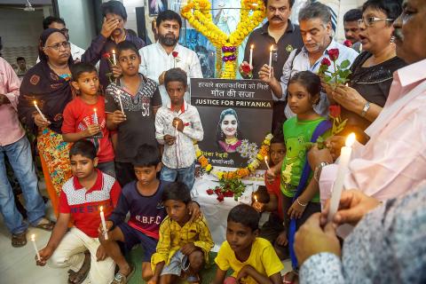 On Saturday, hundreds of protesters gathered outside a police station on the outskirts of Hyderabad to demand justice, while protests also took place in New Delhi and Bangalore.