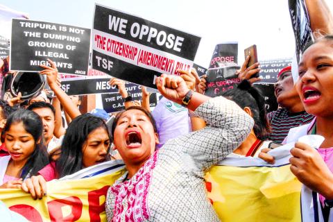 Hundreds of demonstrators yesterday closed down streets in northeastern India as part of an 11-hour shutdown in protest of legislation that would grant citizenship to persecuted Hindus and other religious minorities from Muslim-majority Pakistan, Bangladesh and Afghanistan who immigrated to the country illegally.