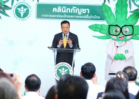 “Today marks the beginning. We are fighting for the better health of Thai people and fighting for a better economy,” he said, standing next to a marijuana leaf mascot wearing a doctor’s coat.