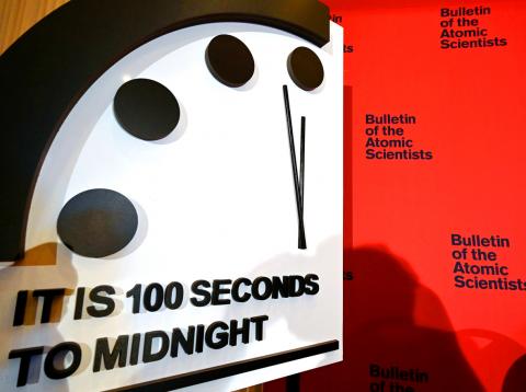 The Bulletin of the Atomic Scientists announced its symbolic “doomsday clock” has moved forward to 100 seconds to midnight, the closest to catastrophe that the scientists have judged the world to be at any point since its creation in 1947, at the outset of the Cold War.