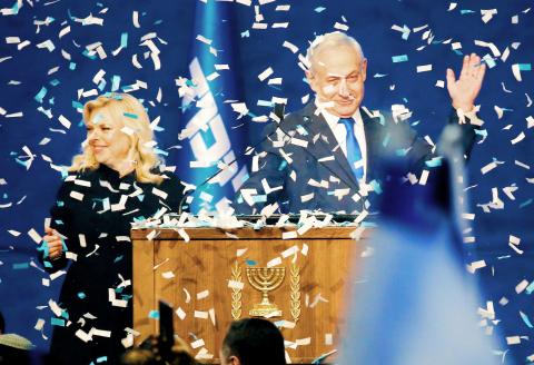 Israeli Prime Minister Benjamin Netanyahu yesterday emerged victorious after the nation’s third election in a year, despite a looming corruption trial, dismaying the Palestinians who were angered by his hardline campaign pledges.