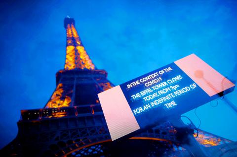 The Eiffel Tower said its doors would shut from 9pm on Friday “due to the COVID-19 epidemic.”