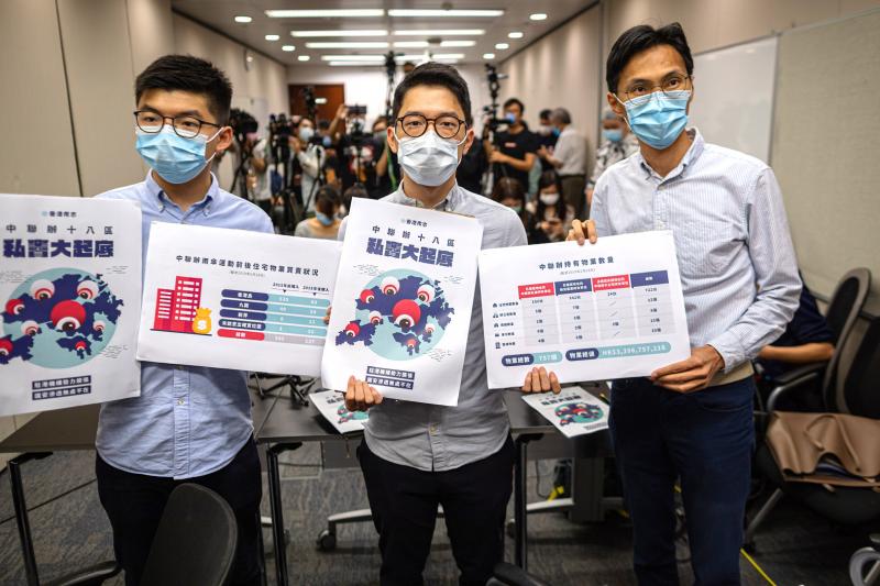 In related news, pro-democracy activists Joshua Wong (黃之鋒) and former lawmaker Nathan Law (羅冠聰) yesterday presented a report on the property portfolio of Hong Kong Liaison Office of the Central People’s Government at a news conference in the territory.