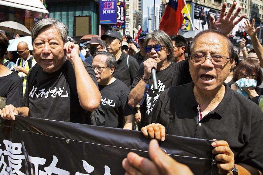 Also rounded up were 81-year-old lawyer and Democratic Party founder Martin Lee (李柱銘) and 71-year-old publishing tycoon Jimmy Lai (黎智英) on charges relating to three unauthorized protests in Hong Kong.