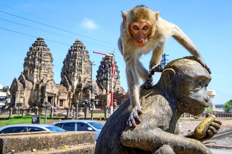 Pointing to the overhead netting covering her terrace, Kuljira Taechawattanawanna bemoans the monkey menace across the heart of the 13th-century city in the central province of the same name.