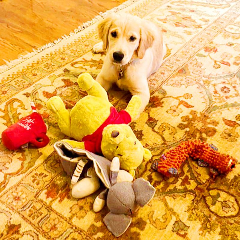 “Mercer and all of her favorite toys!” dog-loving Pompeo wrote on his personal Twitter account.