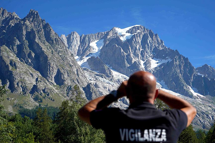 An Italian alpine resort on Friday remained on high alert over fears that a vast chunk of a glacier on the slopes of the Mont Blanc massif could plummet in high temperatures.
