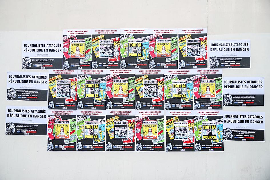 The cover of yesterday’s new issue has a dozen cartoons mocking Mohammed, reproducing images that sparked protests when first published and a debate about the limits of freedom of speech.