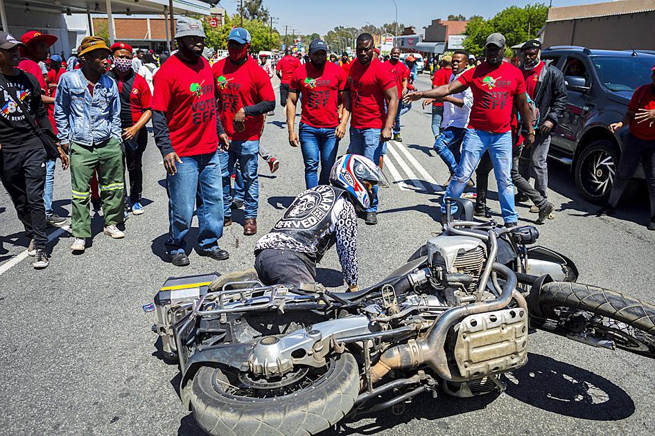 The radical Economic Freedom Fighters (EFF), who represent poor black South Africans who feel left out of the country’s post-apartheid prosperity, staged a counter-march attended by thousands of protesters.