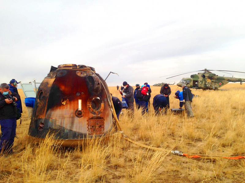 NASA astronaut Chris Cassidy and Russian cosmonauts Anatoly Ivanishin and Ivan Vagner landed about 150km southeast of the Kazakh city of Zhezkazgan at 2:54am GMT, footage broadcast by the Russian space agency Roscosmos showed.