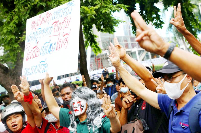 Thousands of people yesterday protested in the center of Thailand’s capital, Bangkok, in the first demonstration since Thai Prime Minister Prayuth Chan-ocha ignored pro-democracy advocates’ Saturday night deadline to resign.