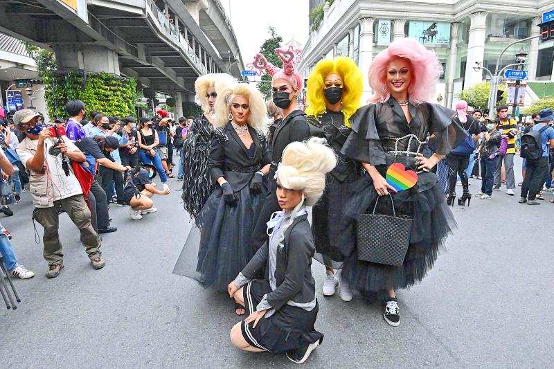 In the relaxed atmosphere, a group of drag queens gathered at the intersection to put on a show.
