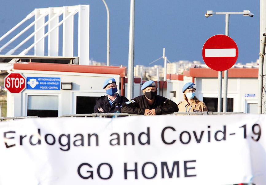 In the south, Greek Cypriots demonstrated against his visit at a checkpoint along the UN-patrolled Green Line.