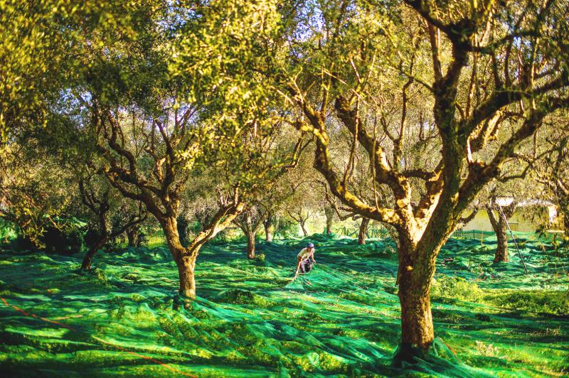 Olives are stripped by hand, falling into nets beneath the trees. It is an arduous task few Greeks sign up for.