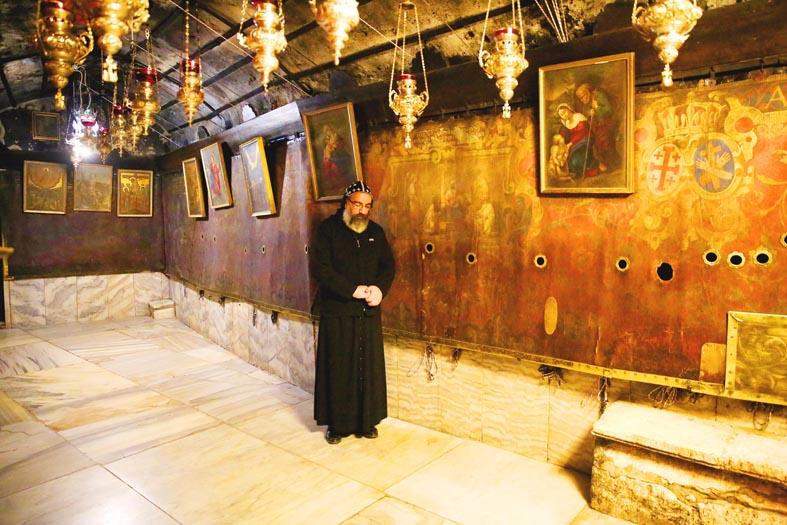 Under the Grotto of the Nativity, the recitation of Armenian prayers by four monks echoed clearly through the basilica deserted of its typical throngs of visitors. The Christmas Eve Mass tomorrow, regarded as the most important annual event at the church, would be closed to the public.