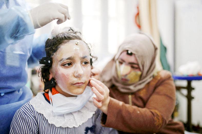 “Our wounds have improved thanks to the mask,” said Izdihar al-Amawi, who is able to go about household chores as she was before the accident.