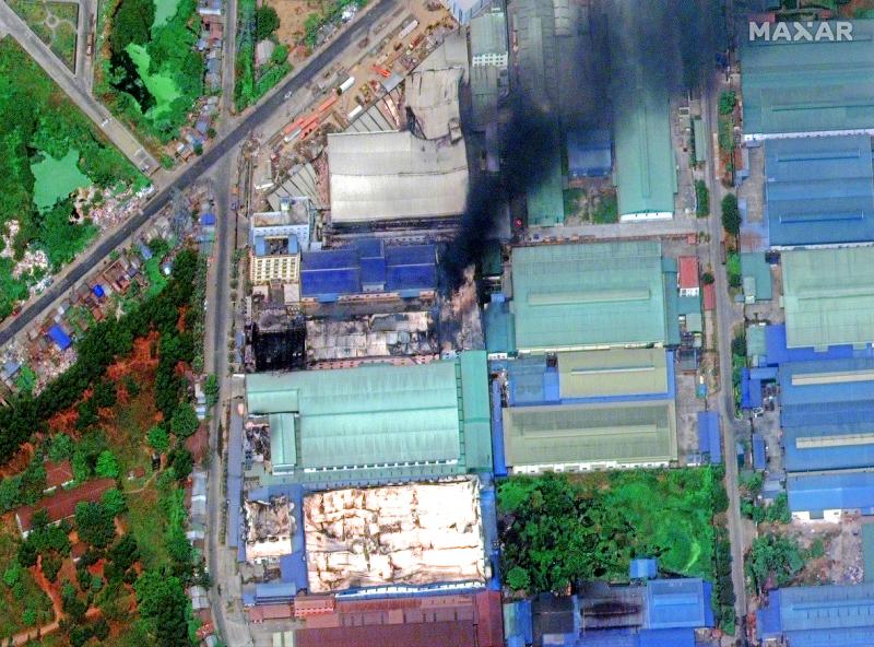Twitter accounts of Myanmar democracy groups allege — without offering clear proof — that the military carried out the factory attacks to justify a crackdown in which dozens of protesters died.