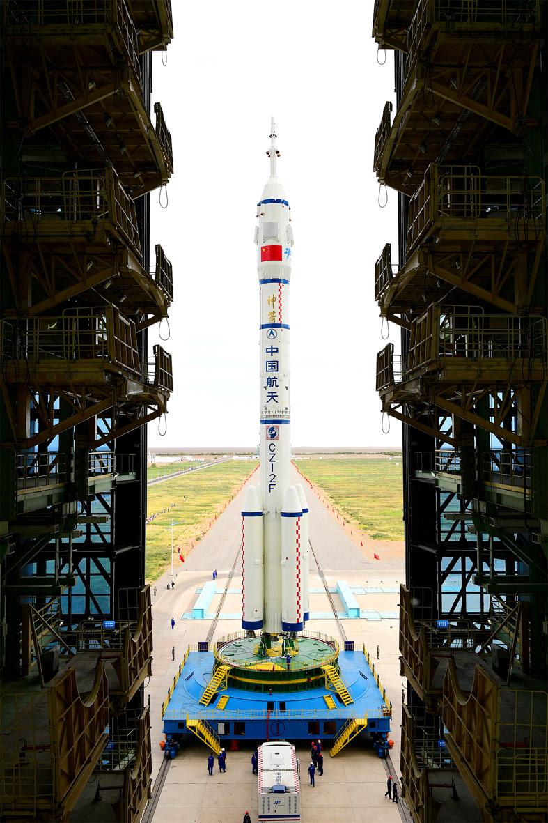 The Long March-2F Y12 rocket carrying the Shenzhou 12 spaceship was transferred to the launch pad at the Jiuquan Satellite Launch Center in northwest China on Wednesday, the China Manned Space Engineering Office said in a statement.