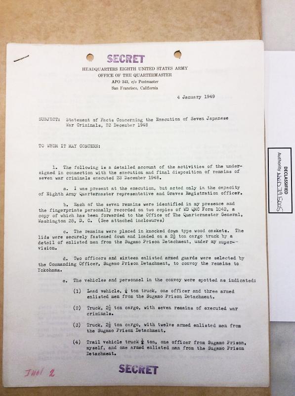 It is believed to be the first time official documents showing the handling of the seven war criminals’ remains had been made public, according to the Japanese National Institute for Defense Studies and the Japan Center for Asian Historical Records.