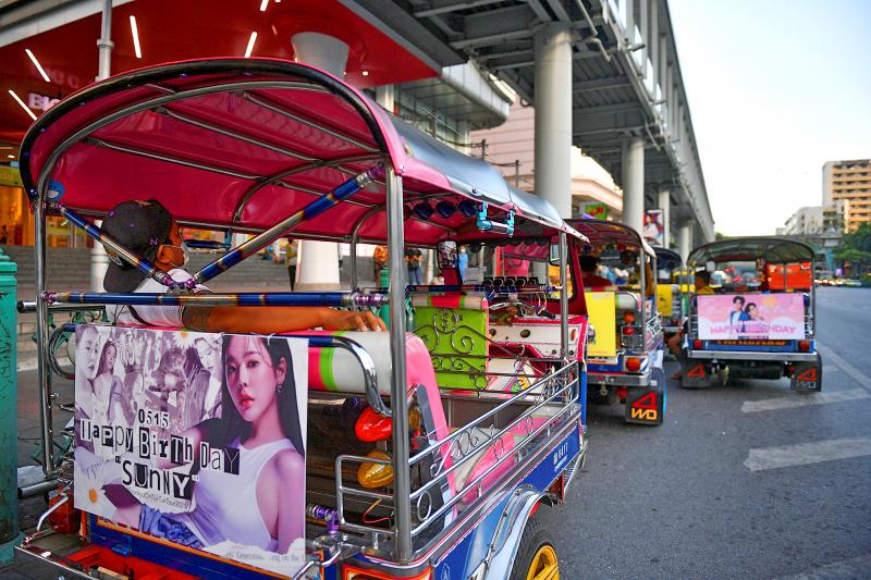 Samran and many others now drive their empty tuk-tuks around Bangkok with a banner of a different K-pop sensation each month, stopping for young Thai fans to take pictures and use their service, often with tips.
