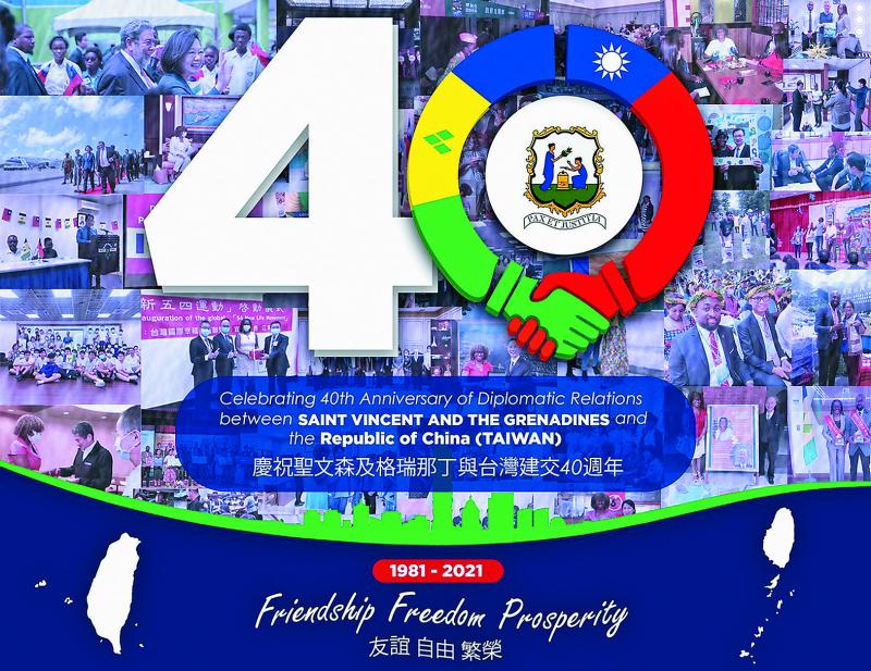 Following a slogan competition among Vincentians, FRIENDSHIP FREEDOM PROSPERITY, emerged as the winning entry which is being used to celebrate the 40 years of diplomatic relations between Saint Vincent and the Grenadines and the Republic of China (Taiwan).