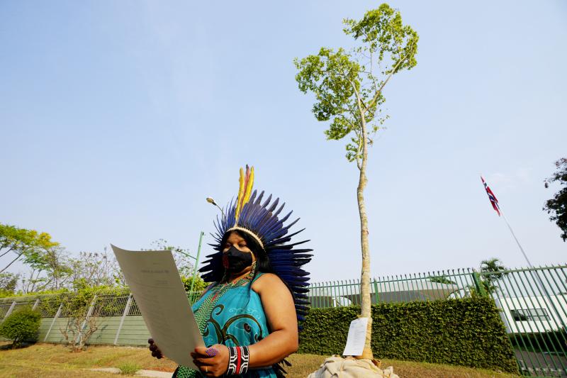 Indigenous rights advocates delivered a Jatoba tree to Norway’s embassy in Brasilia on Tuesday, seeking “refugee” status for it in a symbolic protest against the destruction of the country’s Amazon rainforest.