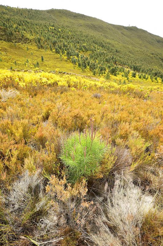 Using hand saws to cut saplings while dangling over craggy cliffs, the team is targeting infestations of alien tree species, mainly pine, but also Australian acacia and eucalyptus, that carpet swathes of mountainside in dark green foliage.
