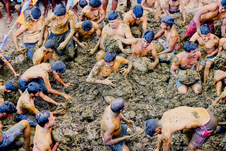 People flock to Gumatapura from far-flung cities each year, and for those in attendance, the messy battle is as much about fun as it is about the perceived health benefits.